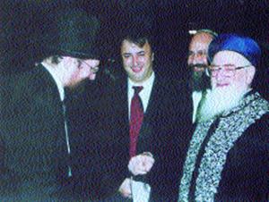 Раввин Берл Лазар с бывшим главным раввином Израиля М. Элиягу и президентом Федерации еврейских общин СНГ Л. Леваевым.