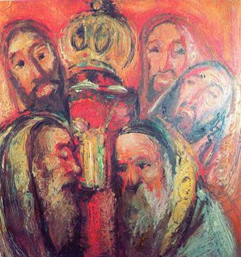 На субботней трапезе в доме бабушки ребецн Ривки присутствуют отец, хасиды реб Аба из Чашника и реб Ханох-Гендель, их всегда приглашают га трапезу в честь святой Субботы. Я с большим интересом всякий раз слушаю их рассказы.