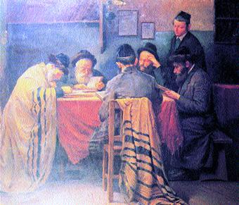 Отец стал просматривать мои записи, почитал несколько страниц о бар-мицве, о том, что было во время трапезы (не про посещение Оэля святых отцов и не про легкую трапезу после молитвы, а именно про трапезу бар-мицвы), затем стал читать о фарбренгене.