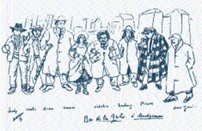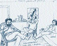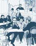 «Ривера, Модильяни и Эренбург в студии Ривера в Париже». Рис. М. Воробьевой. / Илья Эренбург в Париже. / «Илья Эренбург и поэт Максимилиан Волошин в кафе “Ротонда”». Рис. А.Фогстейдт.