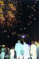 Раввин Цви Пински – посланник Любавичского Ребе и директор организации «Бейт Хабад», сказав благословения, зажег большую ханукию, — тут же в толпе вспыхнули десятки, сотни маленьких огней. Двор осветился огнем фейерверка – праздник начался.
