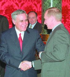 Президент Путин фактически с момента избрания провозгласил, что наследие евреев, иудаизм, как и другие религии, которые подвергались гонениям в советское время, имеет безусловную ценность для России. Осенью 2000 года Владимир Путин присутствовал на открытии еврейского общинного центра и произнес краткую, но выразительную речь об этнической и религиозной терпимости. Спустя некоторое время он обедал с Натаном Щаранским, который некогда был объявлен в СССР диссидентом, а сейчас возглавляет представленную в кнессете политическую партию, выражающую интересы выходцев из Советского Союза, главным образом из России. Теперь на совместной пресс-конференции с Моше Кацавом Владимир Путин заявил, что Россия возмущена террористическими актами, от которых страдает мирное население Израиля, и добавил, что «каждый россиянин соболезнует родственникам погибших и раненых детей».
