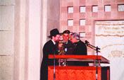 Программа визита президента была очень плотной. Дорожа каждой минутой, Моше Кацав сразу направился к трибуне. Он приветствовал главного раввина России Берла Лазара, председателя Торговой палаты «Израиль-Россия» Леви Леваева. В обращении к собравшимся господин Кацав в частности отметил: «Евреи России всегда были примером стойкости. И в том, что мы, представители Израиля, сегодня здесь стоим, ваша большая заслуга.