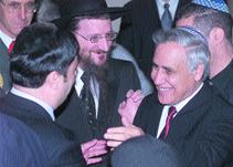 Президент Израиля вошел в зал ровно в 13.00 и под аплодисменты гостей занял место за длинным столом на подиуме. Между ним и Аркадием Вольским находился руководитель Торговой палаты «Израиль-Россия» Леви Леваев, который и приветствовал собравшихся от имени устроителей приема. «Мы ведем здесь диалог при поддержке двух президентов, при искреннем желании укреплять двусторонние отношения. Позвольте выразить надежду, – закончил он, – что визит президента Израиля в Россию будет способствовать пробуждению экономических и торговых связей между двумя странами». И передал президенту Израиля письменное приветствие участников собрания.