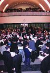 Когда истекло время поста, со сцены Дворца конгрессов раввин Шолом-Бер Крински прочитал Свиток Эстер. Чтение сопровождалось показом слайдов.