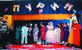 В завершение пуримского марафона прошел грандиозный по своим масштабам праздник для более чем двух тысяч человек, проведенный в городском цирке. Представление началось уже в фойе, где взрослых и детей встречали клоуны и акробаты, устраивались игры и конкурсы. Все с большим удовольствием разбирали трещотки, дудки и другие «шумовые устройства». Радостно было наблюдать, как взрослые, сбросив с себя груз повседневных забот, в карнавальных масках веселятся вместе с детьми, распевая еврейские песни. А потом был пуримшпиль, поставленный силами коллективов женского педагогического училища «Бет-Хана», Израильского культурного и Общинного центров.