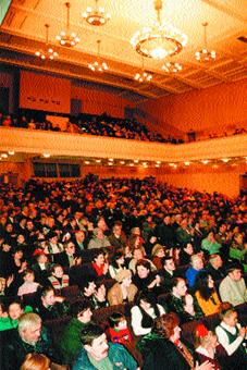 На входе раздавались новый номер газеты «Симха» и подарки детям, присланные Федерацией еврейских общин России, и у людей сразу поднималось настроение. Перед входом те, кто не успел взять билет, как в старые добрые времена спрашивали лишний билетик. И действительно, в зале ДКМ был полный аншлаг, присутствовали более 500 человек.