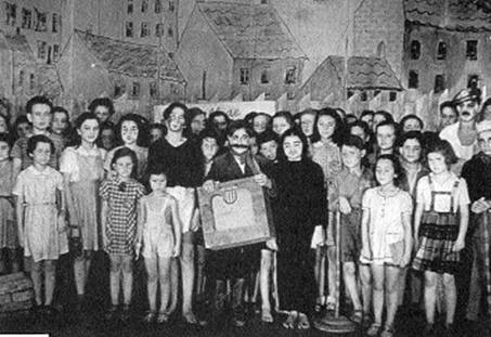 Заключительная сцена оперы «Брундибар». Декорации Ф. Зеленки. Кадр из нацистского фильма. 1944 год.