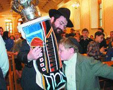 Конечно, было чтение Десяти Заповедей, свитки Торы целовали. В донецкой синагоге есть уже два полных свитка Торы, увенчанных коронами! Их несли по залу раввины Пинхас Вышецкий и председатель донецкой еврейской общины Аарон Вагнер; р. Вагнер даже поднялся со свитком на балкон в женское отделение, поскольку в этот день оно также было заполнено детьми. «Очень приятно, – сказал он, – видеть детей, когда они прикасаются к Торе. Конечно, нужно приходить к Торе самим, а не ждать, пока придет Тора. Но сегодня мы хотели показать: Тора принадлежит каждому еврею, даже самому маленькому».