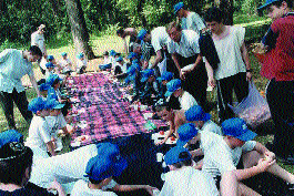 Энергичные, веселые, чуткие и внимательные ребята, приехавшие из Израиля, Америки, Австралии, Англии и Канады, делали все, чтобы заполнить каждую свободную минуту играми, развлечениями, беседами, старались, чтобы каждый ребенок нашел занятие по душе, узнал как можно больше нового и интересного, устраивали викторины и диспуты. Девочки с удовольствием изучали еврейские национальные песни и танцы, занимались рукоделием, рисовали, лепили. В этом им помогали руководители музыкальных и художественных кружков, учителя средней школы «Бейс Менахем» Е. Кессо и Л. Воробьева. А мальчики, помимо занятий в кружках, активно занимались спортом: играли в баскетбол, волейбол, теннис, катались на велосипедах и роликовых коньках; оказались среди них и любители рыбной ловли. Настоящим другом и помощником стал для них учитель физкультуры В. Фадеев. Ребята с удовольствием расписывали свои кипы и цицис. Они эмоционально пели о Б-ге, о скором приходе Мошиаха, об Израиле.