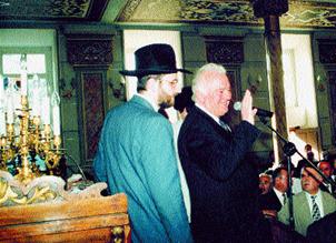 Президент Грузии Эдуард Шеварднадзе в тбилисской синагоге на мероприятии, посвященном 2600-летию совместного проживания грузинского и еврейского народов. Сентябрь 1998 года.