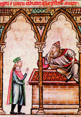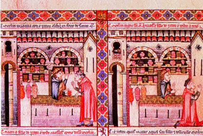 «Кантигас де Санта Мария». Кантига 25, где еврей изображен как средоточие алчности и нечестивости в торговых делах.