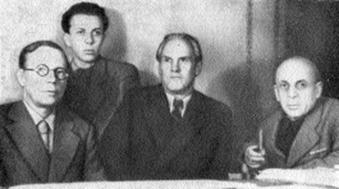 Слева направо: Н. Заболотский, А. Межиров, Н. Тихонов, П. Антокольский. Тбилиси, 1947 год.