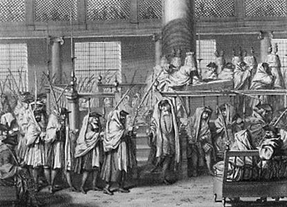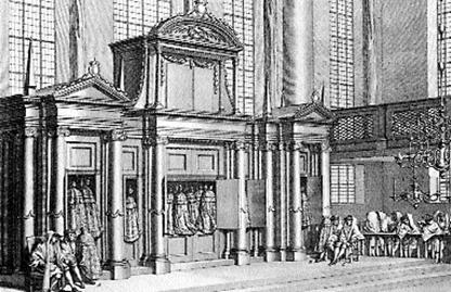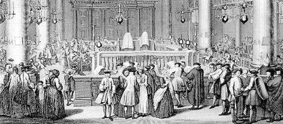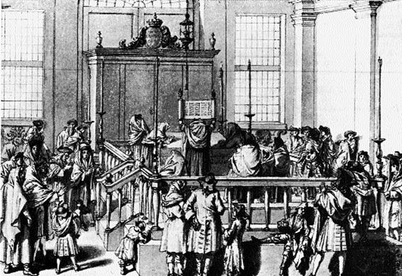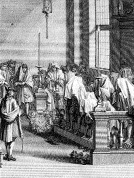 В синагоге Гааги. Гравюра Бернарда Пикара, XVIII век.