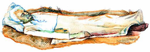 Покойника перенесли с кровати на пол, уложив сперва, как положено, солому, за которой сходили к Лымаревым, у которых корова. К удивлению сыновей, сведущие соседи, пошептавшись, переносить отца из его с мамой спальни их не позвали, а проделали это сами с помощью московинских сыновей. В головах покойника зажгли свечи, и потянулся пустой день. Все, конечно, плакали и убивались, но что делать дальше, не знали.