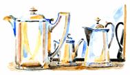 Муська вспоминает свой жуткий сон и, пребывая все еще в замешательстве, озирает, чтобы отвлечься, старый комнатный буфет, на открытом верху комодной середины которого имеется фоном золотушное зеркало, а перед ним на мельхиоровом почерневшем подносике стоят три разномастных, мельхиоровых же, то ли сливочника, то ли кофейника варшавской работы.