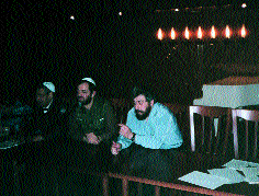 При соблюдении особых правил каждый сам себе, собственной семье может построить шалаш, и это очень желательно. В Израиле таких маленьких шалашей всегда множество, а в Москве в этом году был по крайней мере один: хасид со стажем, заместитель главного редактора Российской еврейской энциклопедии Зеев Вагнер построил его для себя на балконе своего офиса в центре города. Зато в больших шалашах недостатка в столице не было. Только в Марьиной роще построили целых два - крытые еловым лапником, душистые, просторные, гостеприимные; поменьше размером – как всегда, на Большой Бронной у раввина Ицхака Когана, у раввина Довида Карпова в Отрадном, в школе Ривки Вайс на улице Клары Цеткин – наверное, наиболее изысканно украшенный руками учениц... Думается, шалашей в городе было не менее двух десятков, так что желающие выполнить заповеди праздника, записанные в Торе, просто не имели возможности отказать себе в этом удовольствии – исполнить свой долг перед Творцом. Однако заметим: везде, в каждой сукке ждали еще большего числа гостей – всем хватило бы и места, и угощения, везде были опытные «инструкторы», готовые разъяснить, что делать и как.