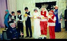 Гостей праздника встречал председатель общины «Шалом» Семен Владимирович Тельман в окружении детей в еврейских национальных костюмах. Кстати, на праздник пришли не только евреи, но и их друзья из других национальных общин города. Они пришли так, как приходят в дом к своим друзьям: кто-то приготовил теплые, прекрасные слова, кто-то песню, кто-то сувенир, а корейская община в знак дружбы преподнесла горшочек с живыми цикламенами... Зачитав поздравление главного раввина России Берла Лазара, председатель общины передал слово учителю истории и традиций Брониславе Абрамовне Тарант, которая рассказала о празднике. Затем настало время спектакля. С воодушевлением новоявленные артисты разыграли сватовство, еврейскую свадьбу, обряд хупы... Софья Ильинична Вайнберг играла сваху, она же – режиссер спектакля, Софья Моисеевна Никифорова – подруга свахи, врач Александр Иосифович Арановский – жених Йоселе, школьница Олеся Цехановская играла невесту. Весь спектакль был не только захватывающим, но и познавательным. Всеобщее оживление вызвала живая белая курица, которой благословляли молодых, а еврейские танцы, органично вплетенные в действие спектакля (хореограф О.Н. Скрынникова), так и звали в пляс. Под занавес все вместе спели песню о Хануке на мотив знаменитой «Тум-балалайки».
