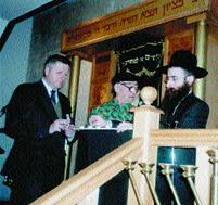 После приветствия председателя общины М.Д. Грубарга главный раввин Петербурга М.-М. Певзнер зажег во дворе синагоги большую ханукию. Собравшихся приветствовал представитель посольства Израиля Шмуэль Полищук... Настроение царило самое радостное и торжественное. И, конечно, не обошлось без фейерверка, множества бенгальских огней и воздушных шаров, воспаривших к ночному небу... Во всем этом особая заслуга организатора праздничной церемонии р. Цви Пински.