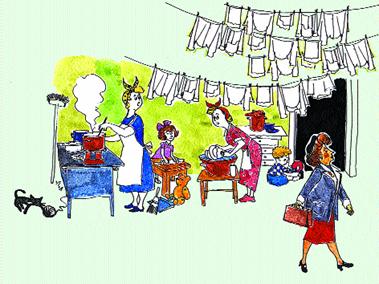 Она глядит на меня из того коммунального мира, где бельевые веревки вяжутся сами собой в гордиевы узлы, где в чулане пахнет опилками, а на кухне хрипят керосинки.