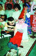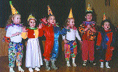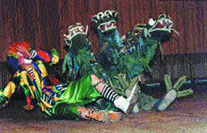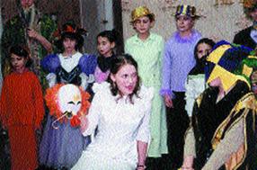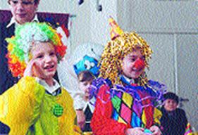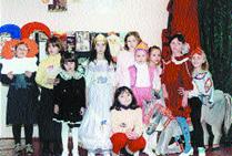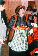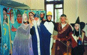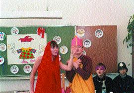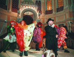 Кому – нам? Еврейскому женскому клубу «Хая-Мушка» города Луганска. Клоуны – лейцаним повернули стрелку фантастической «машины времени», и мы очутились в еврейском местечке начала 20 века в канун Пурима.