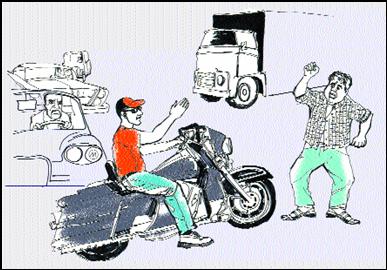 Я, например, прекрасно знаю, что положено выполнять. Вот еду я на своем мотоцикле, и, скажем, вдруг грузовик проносится совсем рядом с моим локтем... Я обычно немного привстаю на сидении и издаю непременное «Осел!» Как правило, в ответ на мое «Осел!» я слышу аналогичное, и мы едем себе дальше, ненавидя друг друга лютой ненавистью. Однако изредка случается, что мой оппонент останавливается, выходит из машины и подходит ко мне: