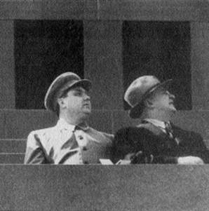 Мне показалось, что на этой фотографии Маленков выглядит даже как-то внушительнее Сталина. Примерно так же, как в последние годы изображали у нас Сталина с Лениным: Сталин что-то такое там важно вещал, а суетливый Ленин («петушком, петушком») бегал вокруг него и почтительно, слегка даже заискивая, выслушивал его мудрые советы.
