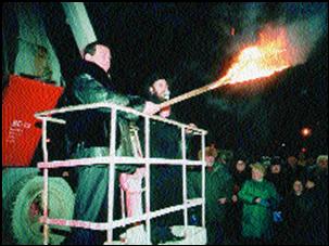 Евреям Луганска особенно повезло. В этом году вместе с главным раввином Луганска и Луганской области Шоломом Гопиным ханукальный светильник зажег человек, имя которого известно всей стране. Со светлым праздником Хануки еврейскую общину поздравил народный артист СССР профессор Иосиф Кобзон.