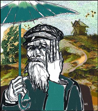 И старый еврей – тяжелый и большой, грязный и старый, с седой бородой, пригнувшись, едет и смотрит из-под зонтика одним глазом.