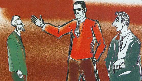 Петр Семенович Коган — литературовед, будущий вроде советский академик. Юлий Исаевич Айхенвальд — литературный критик, будущий эмигрант, задавленный берлинским трамваем... И незадолго до революции схлестнулись на каком-то диспуте.