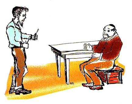 Но вот уж и неделя минула, а Тоди к Лейзеру все не заглядывал. Но в пятницу утром, когда Лейзер (в подштанниках — штаны берег) сидел на ящике и ел борщ с черствым хлебом, Тоди пришел и сказал: