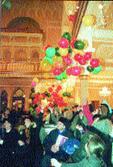 изготовленных своими руками на занятиях воскресной школы. Духовой оркестр играл