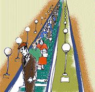 Вы в метро, на переходе, о чем думаете? Когда с кольцевой переходите на радиальную. По этому наклонному коридору. Сперва через такие ворота (припоминаете?), под красную арку. Среди стен, на два потока разделенные.