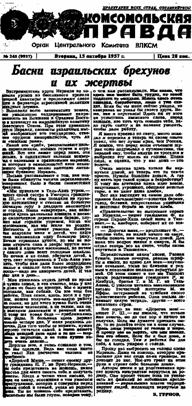 Впрочем, еврейская тема исчезла из прессы ненадолго. Такие ведущие газеты, как ориентирующаяся на читателя из молодежной и студенческой среды «Комсомольская правда» – орган ЦК ВЛКСМ; рассчитанная на интеллектуальные круги «Литературная газета» – печатный орган Союза писателей, и массовая газета «Труд» – центральный орган профсоюзов, – в октябре 1957 года опубликовали статьи об эмиграции советских евреев в Израиль. Речь в них шла о сионистских «брехунах», заманивающих доверчивых советских евреев в Израиль, о трагедии тех, кто «поменял свою истинную родину на “рай” земли обетованной», и что на самом деле представляет собой израильская действительность.