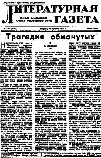 После опубликования «Литературной газетой» 29-го октября статьи Л. Шейнина «Трагедия обманутых», в которой рассказывалось о тяжелой судьбе евреев, иммигрировавших в Израиль, редакция получила свыше двадцати читательских писем.