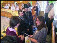 Потом свиток с песнями и танцами понесли вниз, на второй этаж. И там, в синагоге МЕОЦ, хасидские хороводы и песни, перемежавшиеся молитвами, продолжались еще долго. В празднике участвовало множество детей.