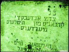 Это была плитка с надписью на идише. Ей пришлось разгрести груды хвороста, веток, мусора и листьев. Чтобы прочесть, нужно было мокрой тряпкой стереть слой грязи.