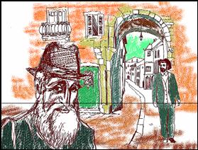 – Я притаился здесь, за спиной у дворника, и вдруг увидел, как медленно открывается правая половина двери. В глубине парадного, так, что невозможно было увидеть с улицы, стоял старик и манил меня пальцем. Он был одет словно хасид в субботу. Штраймл* из лисьих хвостов, черный блестящий кафтан с гартлом**, белые чулки до колен.