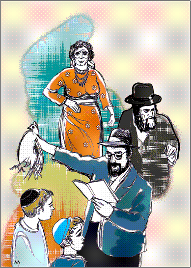 Из миквы – за детьми и на капоройс. Младший до сих пор боится петуха, когда его проносят над головой. Абрам начинает заводить разговоры об этом сразу после Девятого ава, и потихоньку-потихоньку готовит малыша к обряду. Но тот все равно плачет и так прижимается к ногам, что покрутить над его головой рвущуюся из рук птицу почти невозможно.