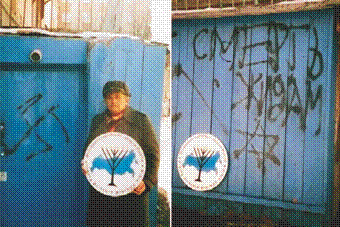 Наци, не встречая должного отпора, наглеют. Первого сентября очередная выходка антисемитов произошла средь бела дня: группа парней сломала навес над входом в тот же общинный дом и намалевала на двери свастику.