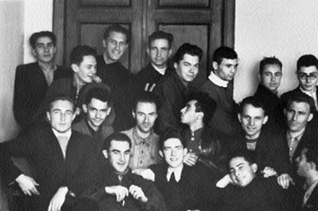 Студент (третий слева во втором ряду).