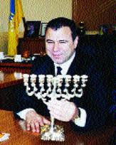 Вручение раввином Черкасс Довом Аксельродом губернатору Черкасской области В. Лушенко серебряной ханукии.