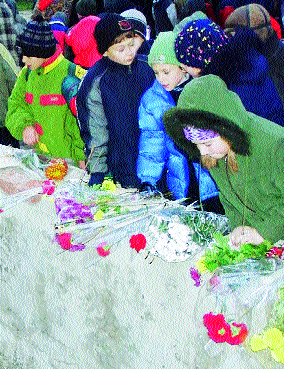 В память о погибших дети зажгли поминальные свечи, читали стихи. «Люди мира, будьте зорче втрое», – пел ученик 7го класса еврейской школы Саша Зарахович. Стоящие у шурфа старики подхватили его песню; образовался сводный хор, призыв которого «Берегите мир!» набатом бил в сердца людей.