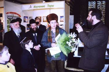А на втором этаже синагоги проходили экскурсии, из которых гости смогли узнать и об истории еврейской жизни на Украине, и о том, что значит синагога в еврейской жизни, и о символике современного здания «Золотой Розы». Ну а вечером состоялся розыгрыш главных призов: еврейской библиотеки, двух поездок в Израиль и самого главного приза – экскурсии в Нью-Йорк, в центр Любавичского движения. На церемонию награждения прибыл почетный гость – глава делегации Еврейского агентства «Сохнут» на Украине и в Молдове Алекс Кац. Победитель, Владимир Исаевич Коток, получивший главный приз, был в восторге. А главный раввин Днепропетровска Шмуэл Каминецкий, завершая акцию, сказал: «Самое главное, что нам удалось привлечь в синагогу тех евреев, кто по разным причинам не находил для себя возможности быть вместе со своим народом. Я думаю, что многие из тех, кто пришел сюда сегодня в первый раз, получили прекрасное представление об иудаизме и сделали первый шаг к возвращению к своим корням».