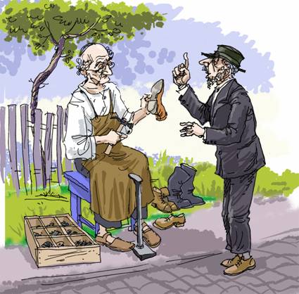 С такой благой вестью от Вседержителя однажды и заявился Цодик Цыпкин к отцу Довида – сапожнику Мендлу, который жил на самом людном месте в Йонаве – напротив синагоги. От весны до глубокой осени в погожие дни Мендл трудился не в душной, пропахшей селедкой и вареными бобами хате, а на виду у всех, на улице, куда выносил все свои сапожничьи принадлежности – колодку, табурет, железную лапу, деревянные ящички с клеем и шпильками; в три ряда, по ранжиру, выстраивал на тротуаре обувь, принесенную в починку, и, вдыхая дырявой, обугленной чахоткой грудью свежий воздух, принимался колдовать над чьими-то рваными штиблетами, туфлями и сапогами. Мастером он был отменным, со свойственными всем умельцам чудачествами и странностями. От других чеботарей он отличался тем, что никогда не называл цену, обычно ждал, когда заказчик предложит свою, чинил все дешево и быстро, навлекая на себя гнев своей скаредной и неуступчивой жены Ханы-Леи, которая частенько вмешивалась в его переговоры с заказчиками и, не сдерживаясь, в их присутствии высоким фальцетом восклицала: «Мой Менделе ошибся, он хороший сапожник, но со счетом у него с детства нелады: муж хотел сказать, что подобьет вам подметки за пятьдесят, а сказал за тридцать. Правильно я тебя, Менделе, поняла – за пятьдесят?»