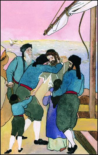 – Возлюбленный брат! – возопил он. – Как горько мне, что из-за меня ты должен принести столь великую жертву! Ах, если бы я мог вместо тебя уплыть в рабство на этом корабле! Но ведь ты хорошо знаешь, что я делаю это только ради твоей жены и детей, что я должен вернуться домой и стать им защитником, кормильцем. Всего тебе наилучшего, добрый брат, пусть Б-г хранит тебя и скоро освободит!