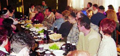 традиционными блюдами и пасхальная Агода. Около 50 человек провели праздничный