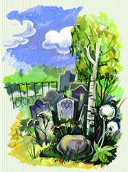 – Это твой дедушка – старый дятел Шимон. Он сидит вон на том белом облаке и молоточком забивает в башмачки херувимов и ангелов шпильки, – сказал могильщик и, перекинув через сутулое плечо лопату, зашагал к другому надгробью.