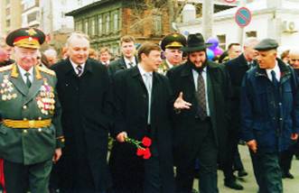 Раввин Беньёмин Вагнер подходит к головной шеренге, где идет руководство области, и все сердечно поздравляют друг друга с праздником. А колонна останавливается. После рукопожатий и улыбок движение продолжается. Некоторое время раввин Вагнер идет рядом с губернатором и мэром во главе колонны.