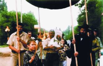 Новый свиток Торы под балдахином и в сопровождении активистов общины с факелами и песнями торжественно «прошествовал» по улицам города, а затем он был отправлен «домой», в город Светлый Яр.
